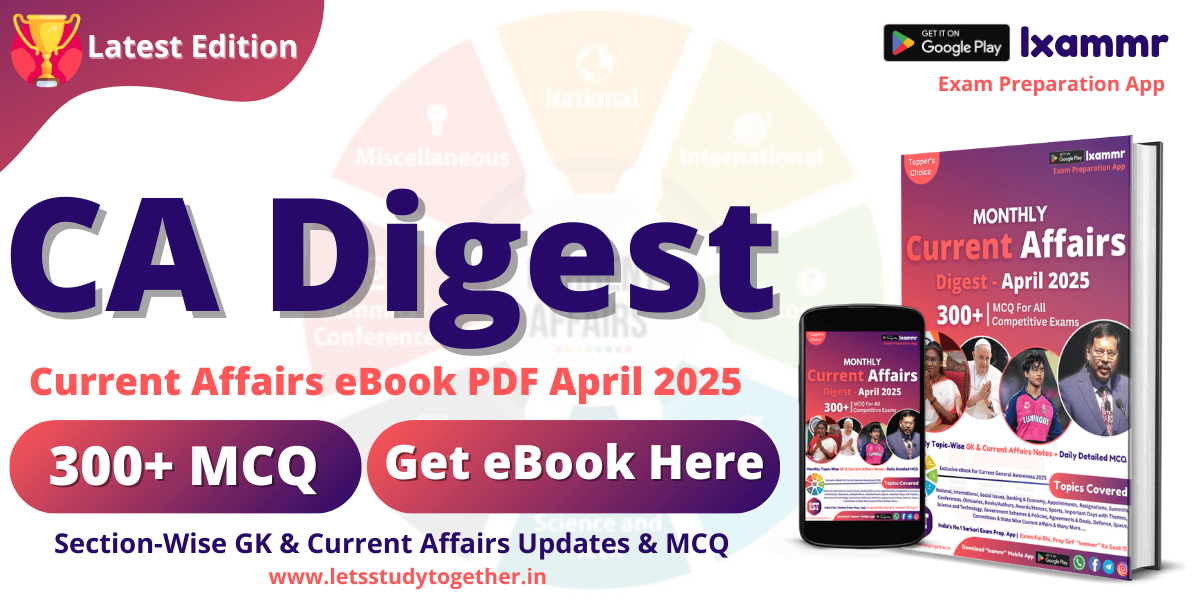 At Let’s Study Together (LST) we understand our students’ requirements and keep them in mind, so the LST Team created a Very special eBook “Monthly Current Affairs Digest – April 2025” ”consist Topic-wise GK & Current Affairs Updates, along with important 300+ questions and answers to crack competitive exams 2025. Topics covered in the Monthly Current Affairs Digest eBook 2025 are:-